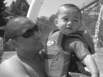 Logan really liked the waves and the swimming lesson from Daddy.