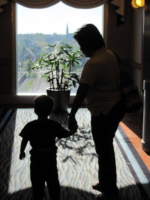 There was a waterfall the changed colours every few seconds at the hotel. Logan loved standing by it and calling out the colours.
